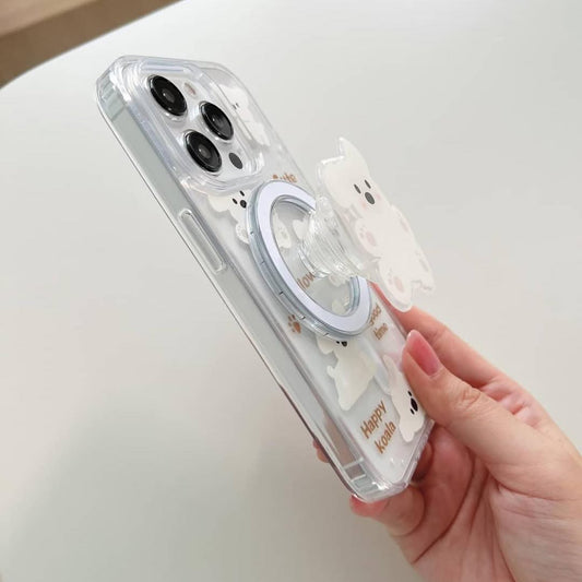3D Cute Creative Bear Flower Cartoon Rabbit Star Floral Decor Wave Curly Edge Invisible Double Phone Stand Holder Hard Happy Smile Cover Girly Charm